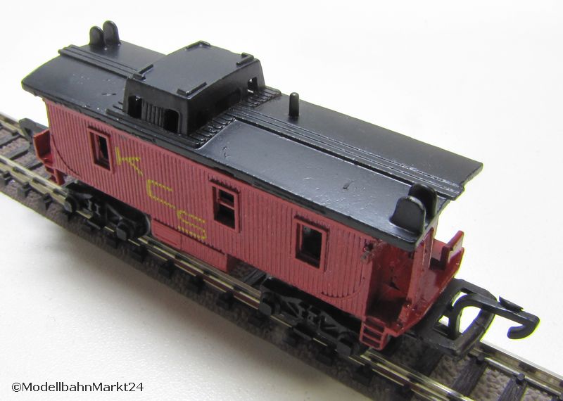 Hochwertig auftretendes Sammlerstück der Firma Lone Star in Spur N 1:160. Roter Gepäckwagen mit schwarzem Dach und Aufdruck "KCS". Modell besteht aus Metall und hat keine Puffer. Die Fotos sind Bestandteil der Artikelbeschreibung. LüP: ca. 60 mm.