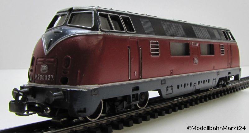 Hochwertig auftretendes Sammlerstück der Firma Märklin in Spur H0 1:87. Beleuchtung und Fahreigenschaften funktionsgeprüft. Betriebsnummer: V 200 027. Leichte Gebrauchsspuren auf dem Dach vorhanden. Die Fotos sind Bestandteil der Artikelbeschreibung. LüP: ca. 214 mm.